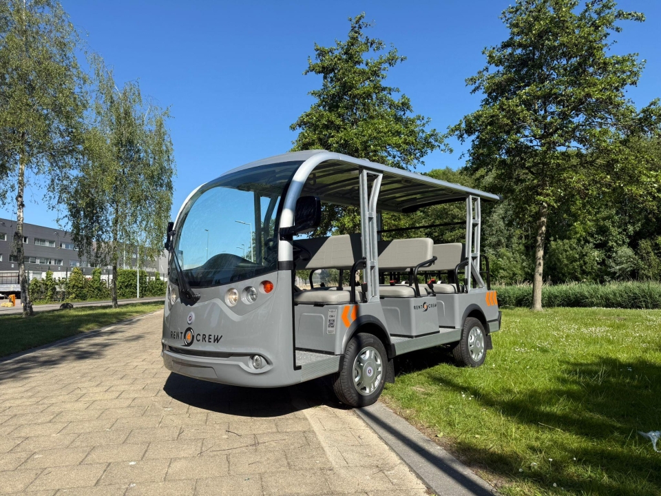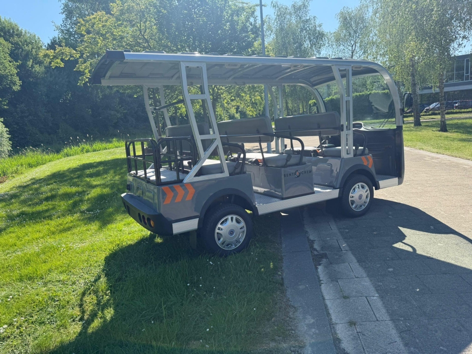 De Crew Shuttle 8 is hét multifunctionele, duurzame vervoersmiddel, ideaal voor personenvervoer op en rondom evenementen en/of beurzen. Of het nu gaat om crew, VIP’s of bezoekers, de elektrische shuttles zijn flexibel in te zetten en bieden passagiers een comfortabel vervoer. De Crew Shuttle 8 is milieuvriendelijk, geruisloos, zeroemissie en eenvoudig in gebruik. De crew shuttle heeft 8 zitplaatsen en beschikt over een lithium accupakket.